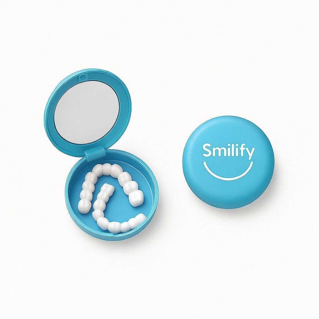 Smilify Veneers are 100% custom-made snap-on veneers that comfortably fit over your teeth to instantly create a brighter, whiter smile.